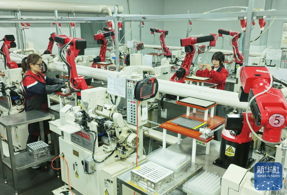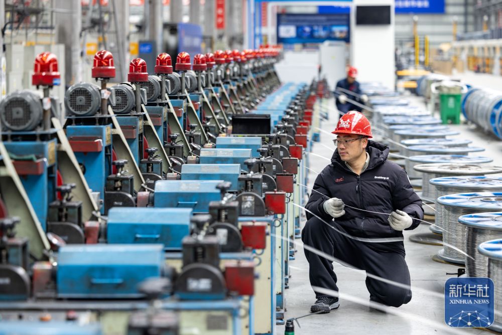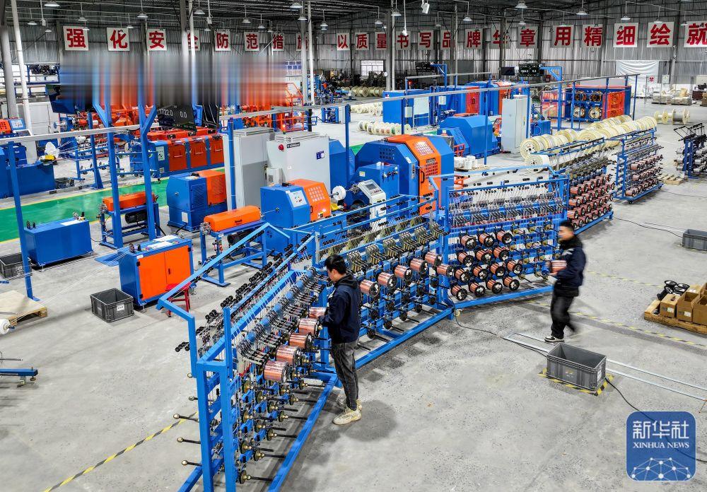 ↑2月24日,在四川省华蓥市华蓥山经开区拓自达电线(四川)有限公司智能车间,工东谈主期骗机械开发出产订单居品(无东谈主机像片)。新华社发(邱海鹰摄)