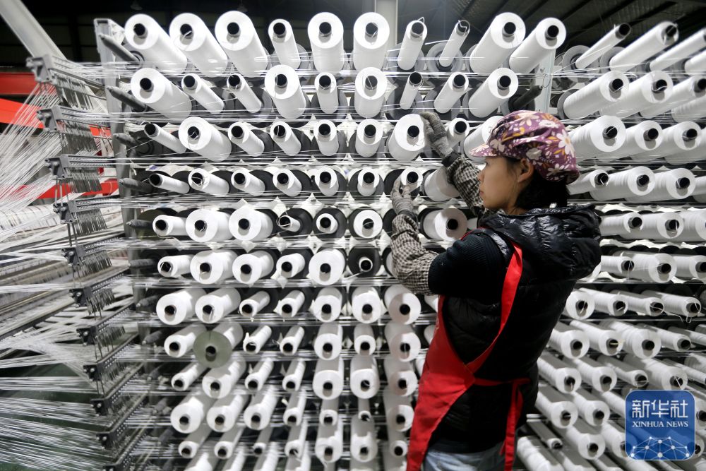 ↑2月24日,山东省青岛市即墨区即发纺织科技有限公司的工东谈主在出产高端纤维居品。新华社发(梁孝鹏摄)