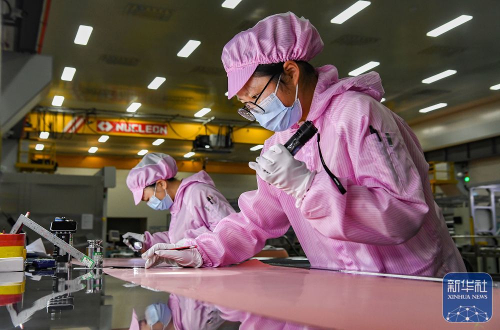 ↑2月24日,在浙江省东阳市南马镇浙江花坛新动力股份有限公司出产车间,工东谈主在检测高性能铜箔外不雅。新华社发(时宽兵摄)