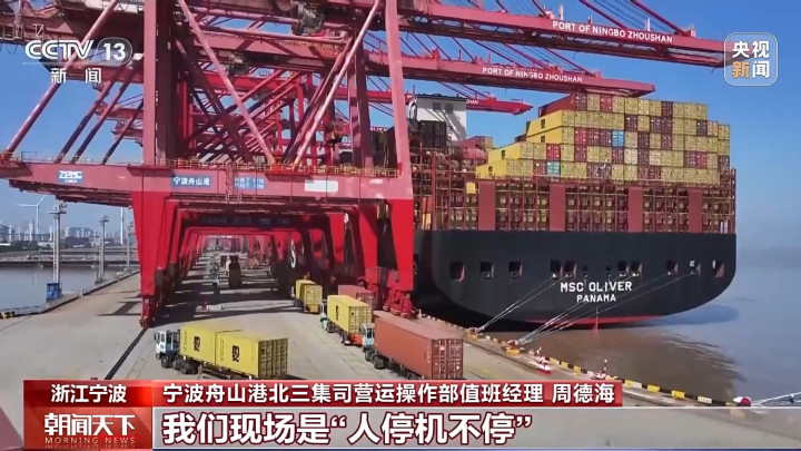 宁波舟山港北三集司营运操作部值班司理周德海:这条船载分量跨越了19万吨,这回在咱们港区的功课量跨越了两万法式箱,像这么的船型,系数春节时刻如故比拟多的。这几天出口箱量增长比拟显明,咱们现场是“东谈主停机不停”。节后的第一波出口蚁合,客户齐但愿抢时辰、赶船期,咱们也分秒必争确保货色能实时出运。