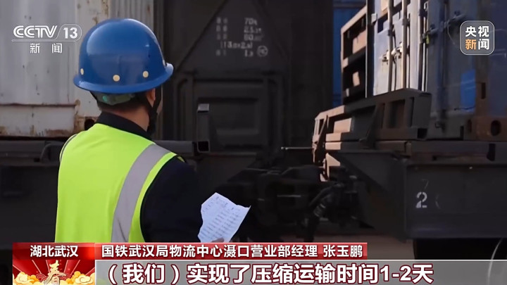 国铁武汉局物流中心滠口营业部司理张玉鹏:当今货量显明上来了,许多企业开年第一批货齐蚁合在这几天发运,每天发到3列左右。通过前置检察、集对付运、双始发站联动,咱们达成了压缩输送时辰1-2天、裁减物流老本15%。