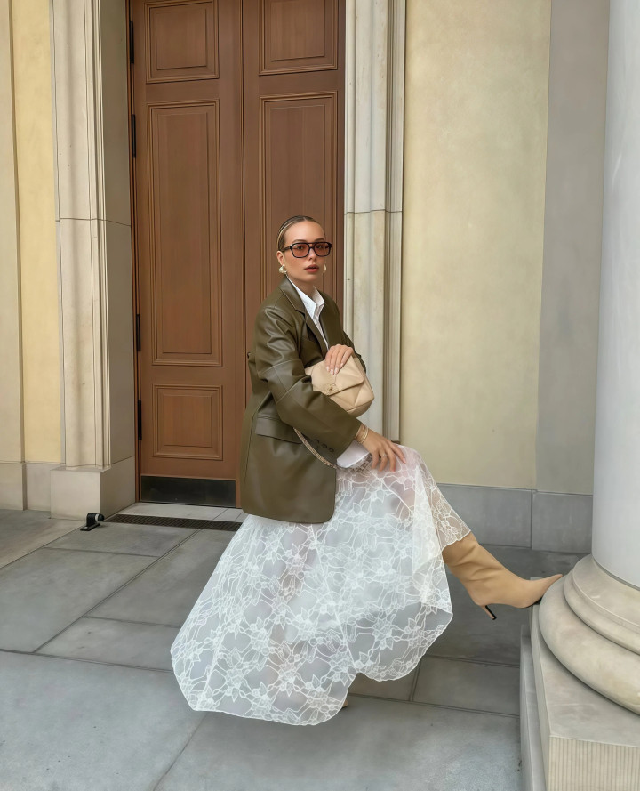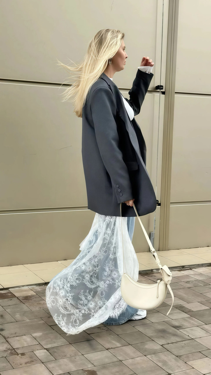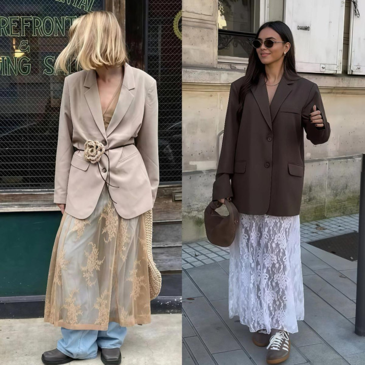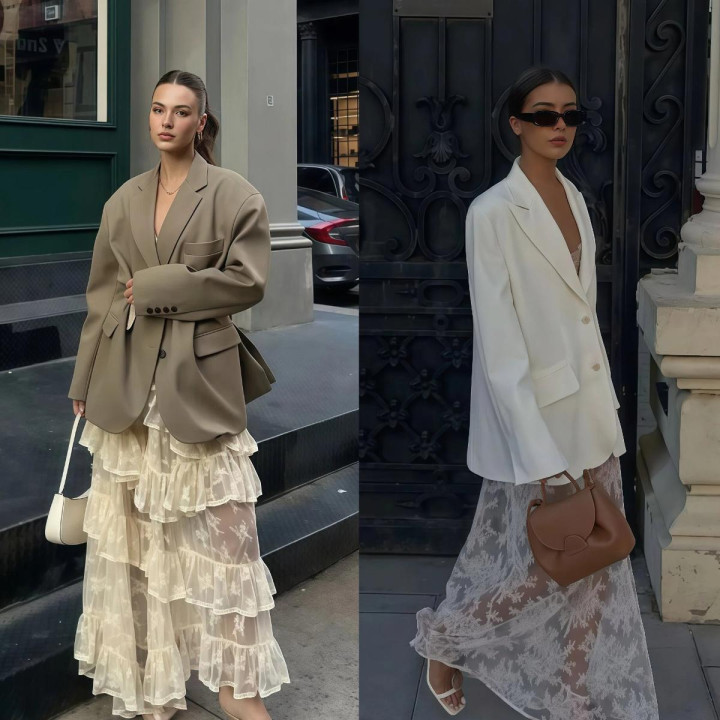 Point④ 西装+蕾丝/纱裙,符合旅行游玩