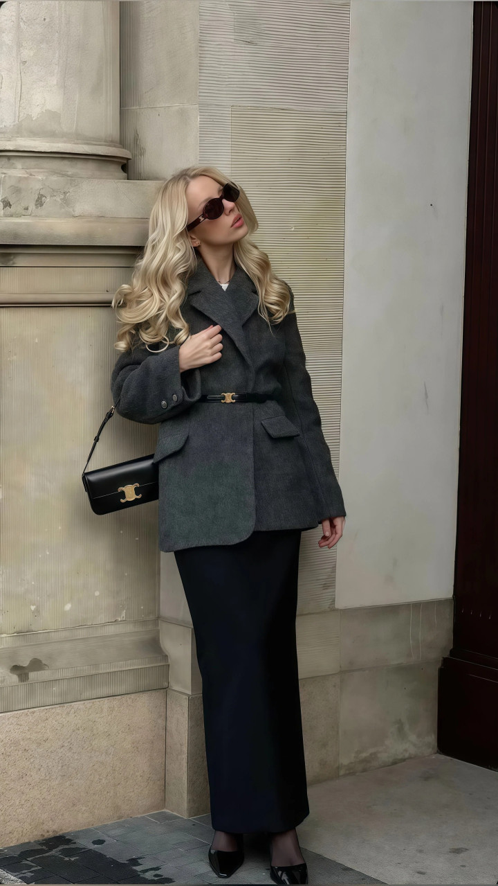 你嫌它太板正、太严肃,但问题不在西装,在你给它配的下装,你永远在配西裤,穿上去照实挑不出误差,但也照实莫得任何驰念点。本年春天,你把那条裤子换成裙子,整件look的走向就全皆不同了。