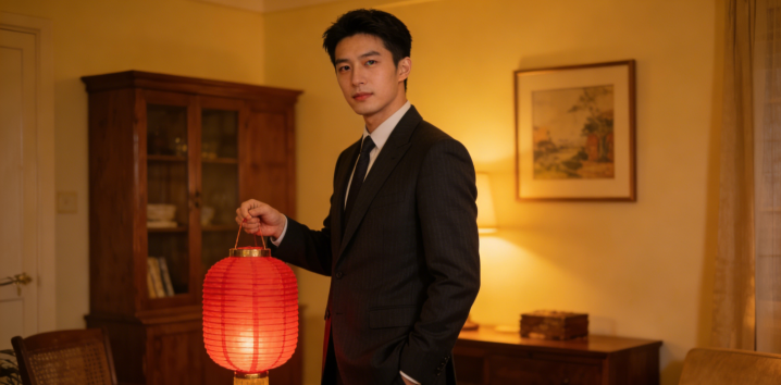 他手里提着一盏旧式羊皮灯,火苗在内部跳跃,映得他的脸一明一暗。
