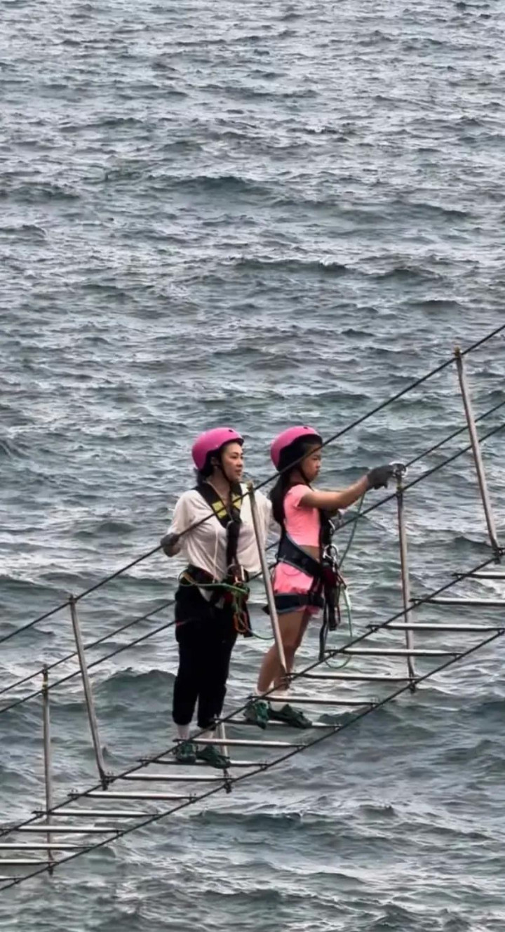 章子怡和女儿女儿一皆住在海南的别墅,她们一皆去蜈支洲岛游玩。章子怡和醒醒一皆去爬天梯,醒醒发怵不敢走的时间,章子怡就在死后饱读动她,母女俩在海潮里互相相守,醒醒有一位好姆妈。