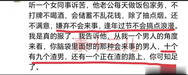 可就这样一个男东说念主,他妻子果然不惬意!而况不是一般的不惬意,是满肚子屈身,合计我方嫁亏了,跟闺蜜纵脱吐槽,话里话外思离异。