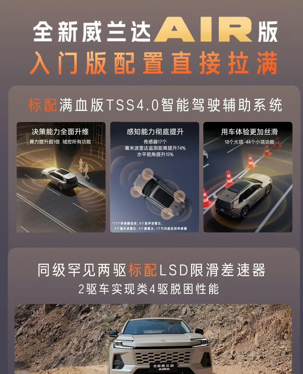 开云app在线下载入口我先说一个比拟专科的LSD限滑差速器,大大量正式力没在这上,威兰达AIR版全系标配LSD限滑差速器,两驱版也有。这事儿很少有东说念主细有计划,我合计恰正是结合两款车互异的第一个钥匙。LSD是啥浅易说,它能竣事傍边前轮100:0至0:100的扭矩及时期派。单侧车轮打滑时,能源霎时治疗到有持地力的一侧。曩昔这是越野玩家才眷注的建立,当今两驱版标配。这意味着什么?朔方用户冬天跑冰雪路面,南边用户雨季走泥泞村说念,无须上四驱也能多一分底气。这套机械结构带来的脱困才调,是电控系统模拟不出来的。