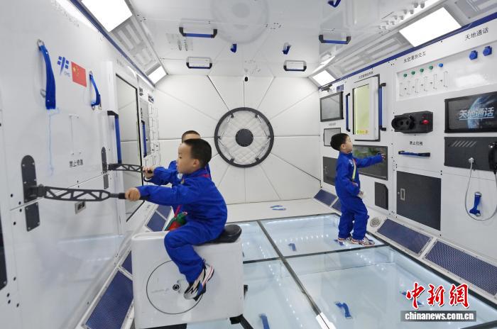 OD体育app官网小一又友在天和中枢舱模子内体验。中新社记者 张瑶 摄 " />
