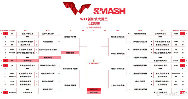 WTT新加坡大满贯女双八强曾经经出炉,女双1/4决赛对阵图曾经经出炉: