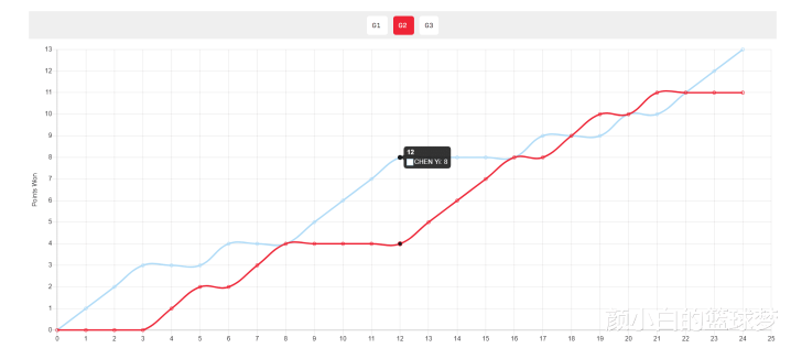 这场比赛的第二局即是本场比赛的转化点,第二局陈熠一度8-4晋升舒麟茜,但随后陈熠的老罪戾又犯了多样初级造作送分,舒麟茜一波流追悼8-8、9-9、10-10、11-11(舒麟茜还一度10-9局点、11-10局点),可这一次陈熠涓滴不慌,最终陈熠13-11拒却逆转拿下凯旋。