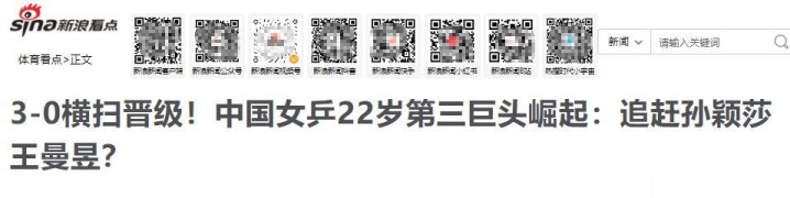 新浪网——3-0横扫晋级!中国女乒22岁第三巨头崛起:追逐孙颖莎王曼昱?