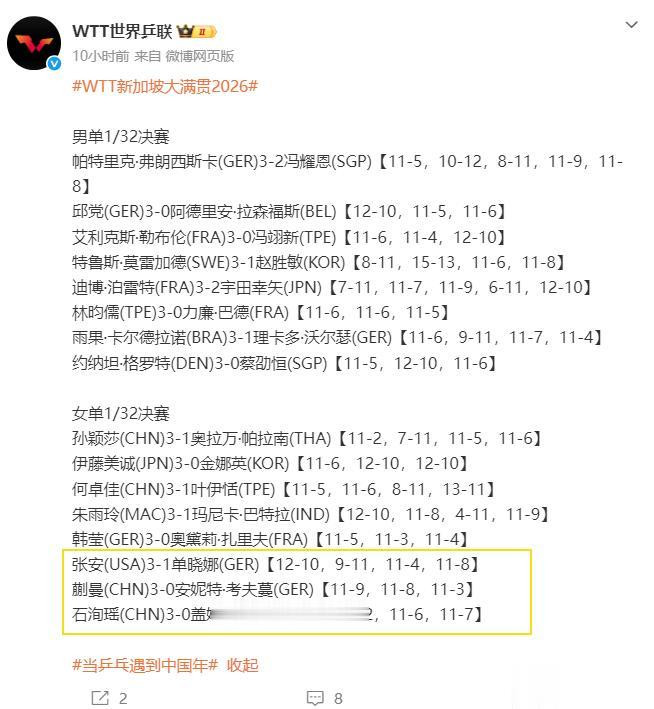 微博——WTT天下乒联官方