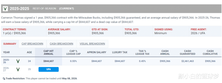 托马斯在被篮网裁掉后,他与雄鹿签下的是一份84万的底薪契约,火箭距离第二糜掷税征点还剩125万,按理说火箭也给得起,并且火箭队正巧是14+3名单,火箭队莫得追赶他确定是因为乌度卡以为他防护弗成,然而火箭队本赛季最差的方面是要紧,要道时刻只可看杜兰特、申京两个点。