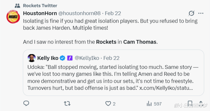 一天之前,火箭率先尼克斯18分被逆转,尤其是小节15-33要紧端崩盘。休媒就炮轰过斯通的运作,对卡姆-托马斯莫得酷爱是败笔。