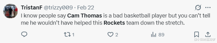 火箭球迷也以为斯通莫得追赶托马斯是败笔:好多东谈主说托马斯投篮技艺欠安,但在比赛的要道时刻,他的得分智商确定能匡助到这支球队。