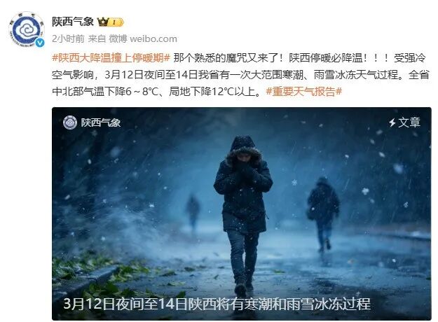 3月12昼夜间至14日经由日平均气温全省中北手下落6~8℃,陕北中北部、关中西北部、秦岭山区下落8~10℃,其中榆林北部局地下落12℃以上;陕南大手下落4~6℃。