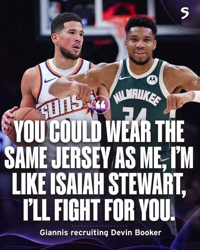 即便仅仅一句打妙语,两东说念主的渊源也相等有重量:字母哥曾在2021年总决赛指导雄鹿打败太阳,夺走总冠军,那段系列赛于今仍留在太阳球迷的记挂里。对太阳球迷来说,一猜度布克穿上雄鹿球衣,简直会感到浑沌。