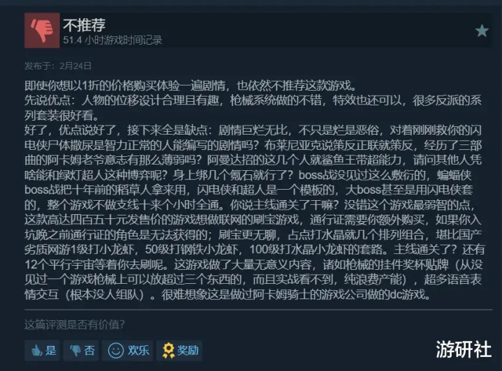 率先泰西玩家关于服务型游戏就没若干好感,有“阿卡姆三部曲”珠玉在前,东说念主们期待的是一趟千里浸式的单次体验,一个云蒸霞蔚的超英故事。