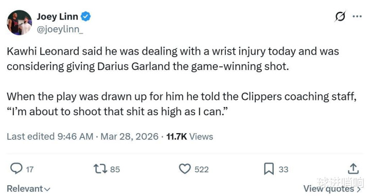 愈加值得咨嗟的是,小卡是在带伤作战的情况下射中准绝杀,赛后小卡采访中露馅我朴直遭受手腕伤病困扰,因此曾辩论让加兰完成终末一投,最终快船提醒组照旧将战略吩咐给了他,濒临这么的情况,小卡对提醒组暗意我方会尽可能将球脱手。
