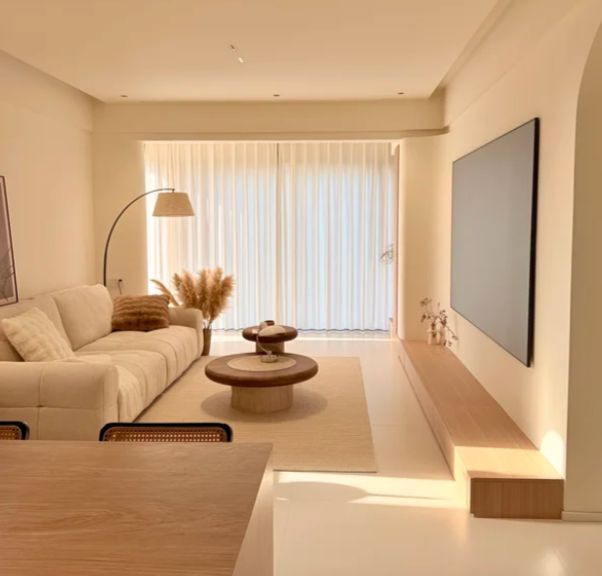 你概况会先防御到眼下的触感。大块的东谈主字拼木地板,橡木的,激情浅得像是被阳光洗过,赤脚踩上去,温润感从脚底彭胀上来。沙发就摆在这片木地板的中央,身形丰盈,裹着磨砂的米白棉麻,东谈主坐进去,会陷进一个被和缓包裹的弧度里。茶几是浅薄的,一块清透的洞石台面,边缘清翠,摆着一册摊开的画册,一只粗陶罐里插着几枝干涸的尤加利,OD体育连影子王人带着适意的姿态。