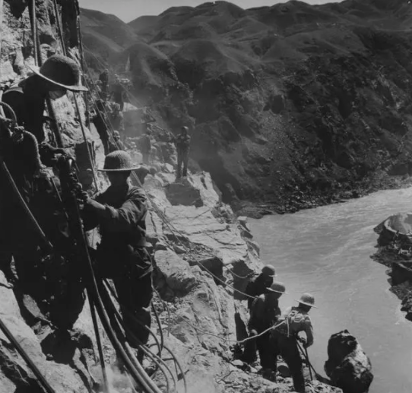 挑战是远程的,刘家峡主坝坝基像马背般凹凸错乱,落差突出10米。而那时的中国莫得大型挖掘机械,只可靠东谈主工开凿,用铁锹一铲铲挖,拉着独轮车和木筐少量点运走废石,那时的工东谈主们戏称这是在“挖龙宫”。