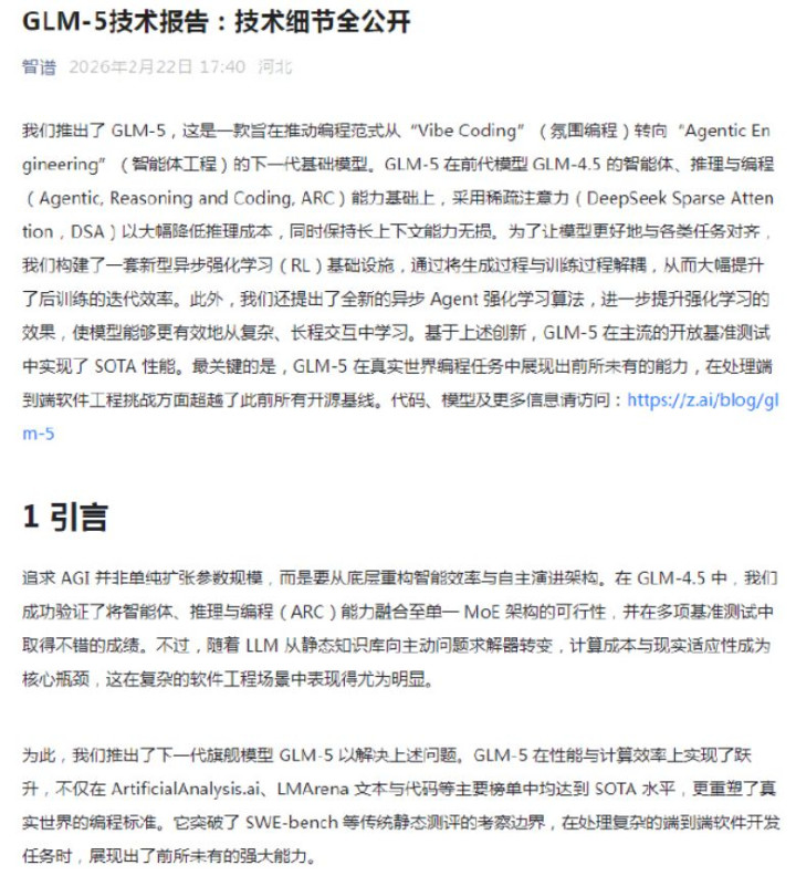 2月22日,智谱发布时刻敷陈,全面解读GLM-5的时刻细节。