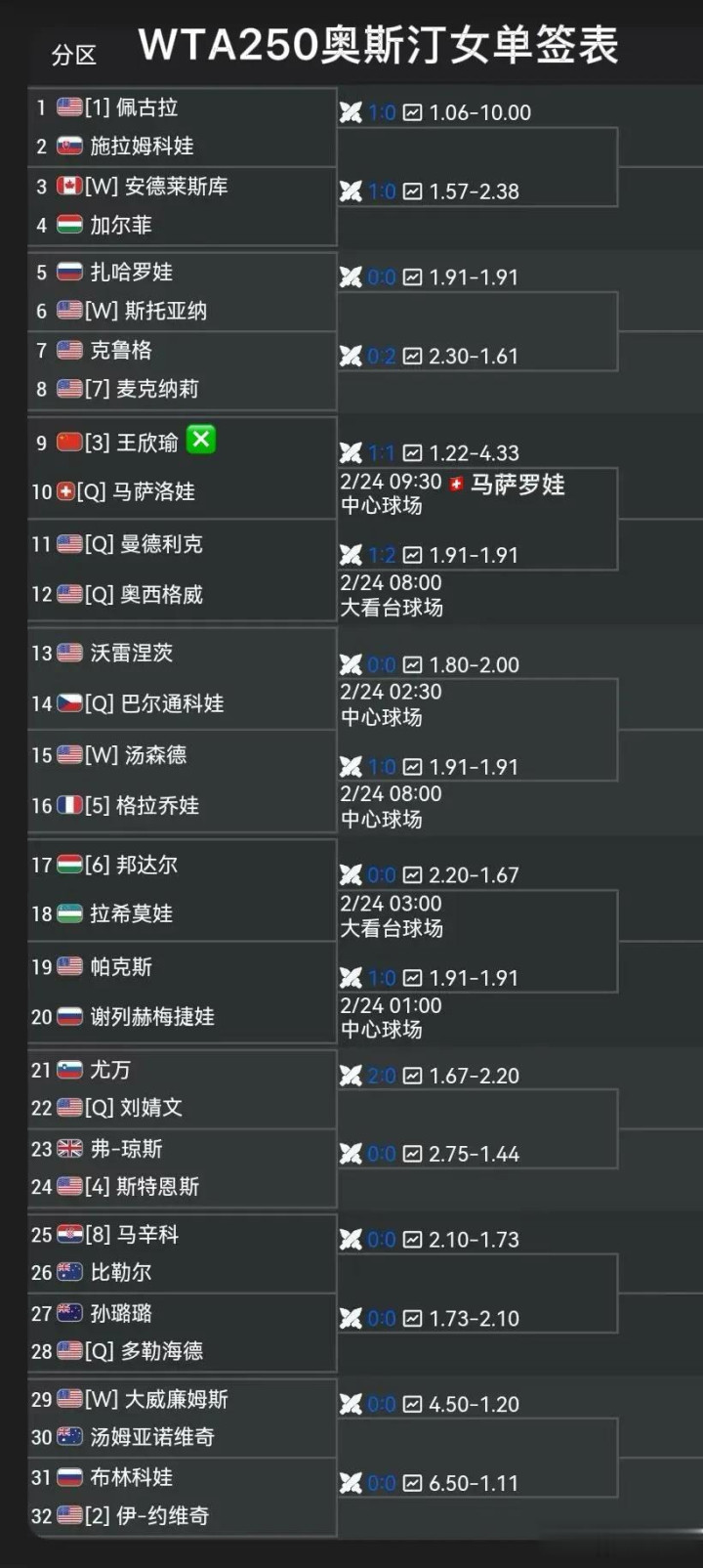 经验赛选手马萨罗娃那景色,上来就先发两次破发,6 - 3纵欲拿下首盘。到第二盘王欣瑜先发球,一启动两东说念主各自卫发打成2 - 2,可没思到马萨罗娃已而发力,OD体育蚁合破发回保发,最终6 - 2赢下比赛。这比赛恶果太让东说念主猝不足防,本认为王欣瑜能有好理会,恶果碰到一轮游。只可说比赛即是充满变数,但愿王欣瑜之后能调养景色,在后续赛事中打出好收获。
