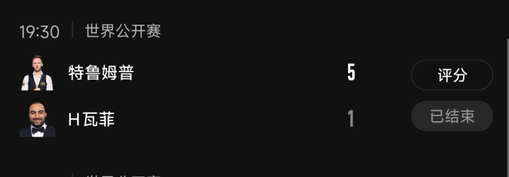 第六局,特鲁姆普莫得给敌手任何拖延的契机,上手后等于一杆闲散淋漓的113分,以本场比赛个东说念主的第三杆破百,为这场对决画上了一个完整的句号。最终,特鲁姆普以5-1的总比分,打败了本届赛事最大的黑马瓦菲,强势晋级四强。