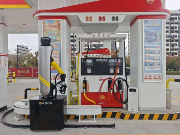在中国石油部分加油站,加油机器东谈主已成为机灵加油的新亮点