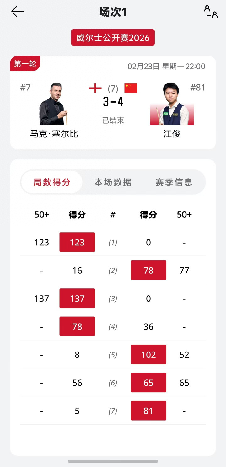 威尔士公开赛是排行赛,冠军奖金10万英镑,由于是7局4胜的短局制,稍不防备就曝冷门,昨天晚上雷佩凡被逆转就很可惜,还好江骏也把塞各人给曝了,为中国军团夺冠扫了一个隔断物。