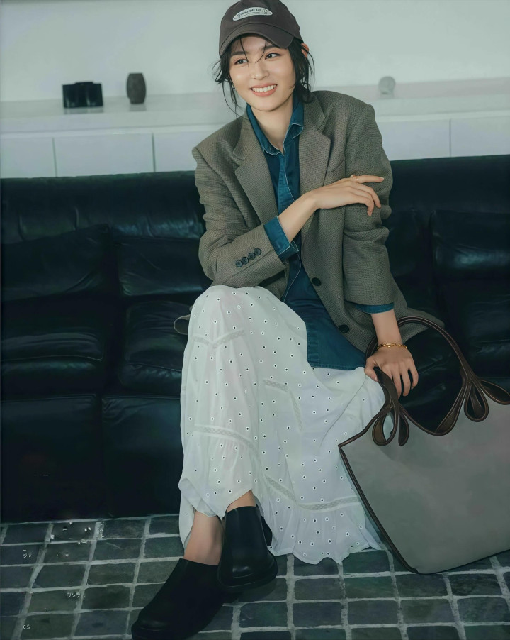 微廓形的落肩西装,在肩线上稍稍作念了外延,多出来的那点空间能把溜肩遮住,同期让你的上半身从紧绷变成舒展的状态,穿上身之后你是平缓的、不刻意的,那种不而已的顺眼才值钱。