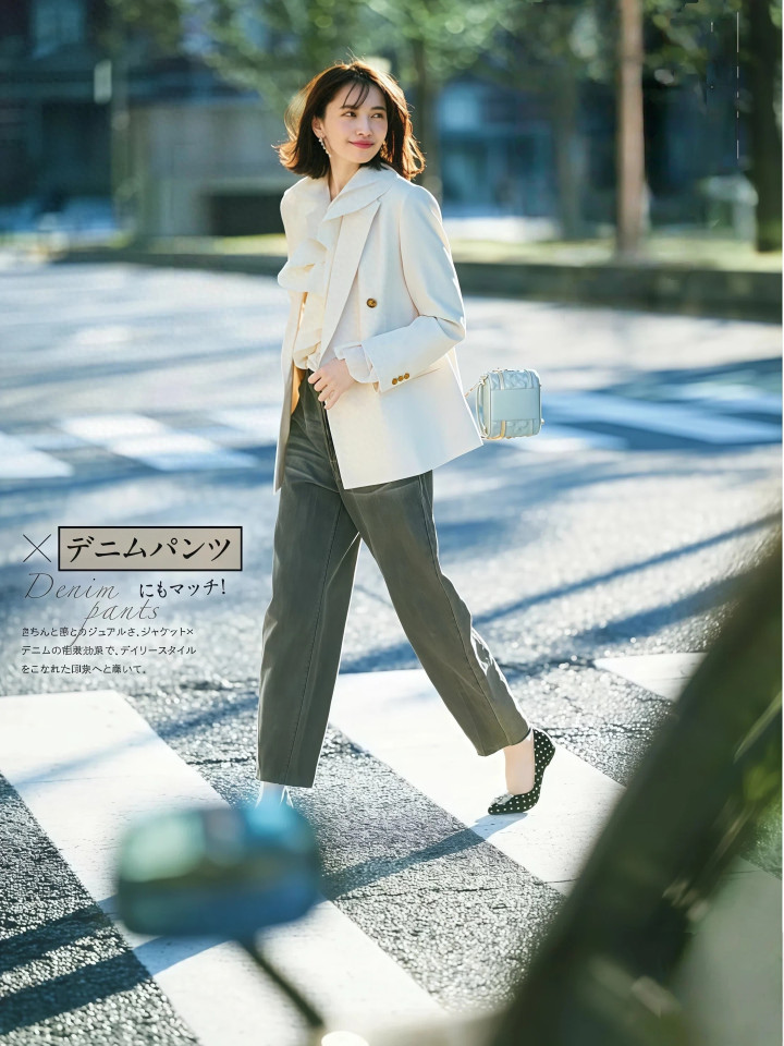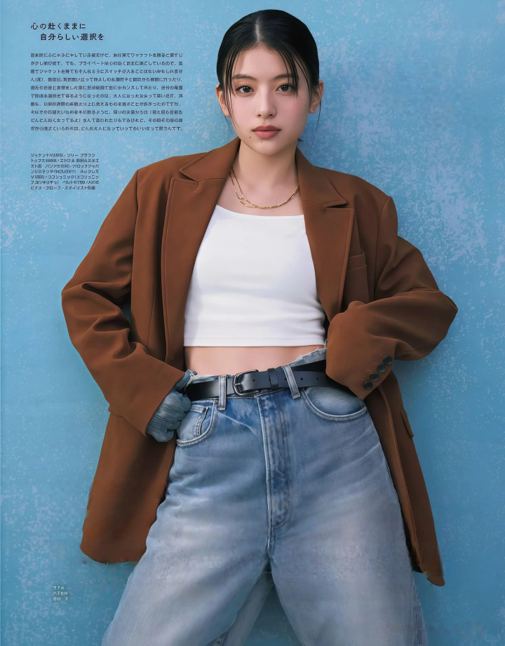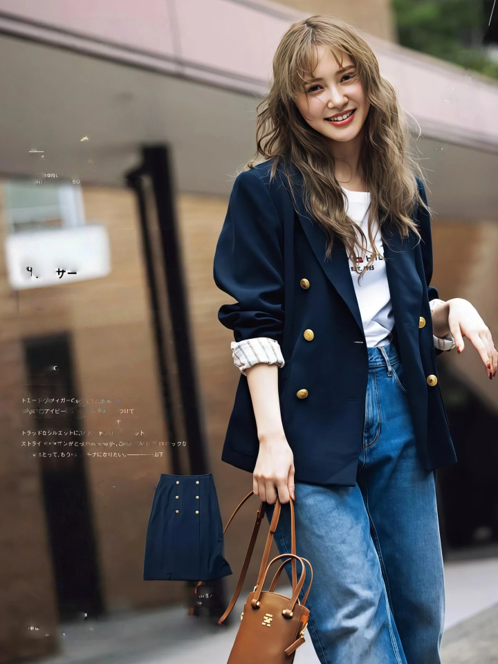 选牛仔裤的时辰留心,深蓝色西装搭偏深的原色牛仔裤更千里稳、顺应通勤,搭淡色水洗蓝更清醒年青、顺应周末出街,凭证你本日要去的场面来选浅深就行了。