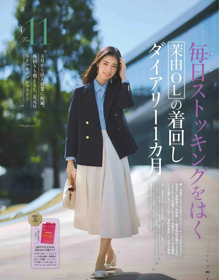 A字裙长度选到过膝的位置,膝盖上头的部分绝对收在裙摆里头,膝盖往下只透露纤细的小腿和脚踝,你的下半身线条就呈现出从宽到窄、从裙摆到脚踝冉冉持住的走势,看着相当干净利落。