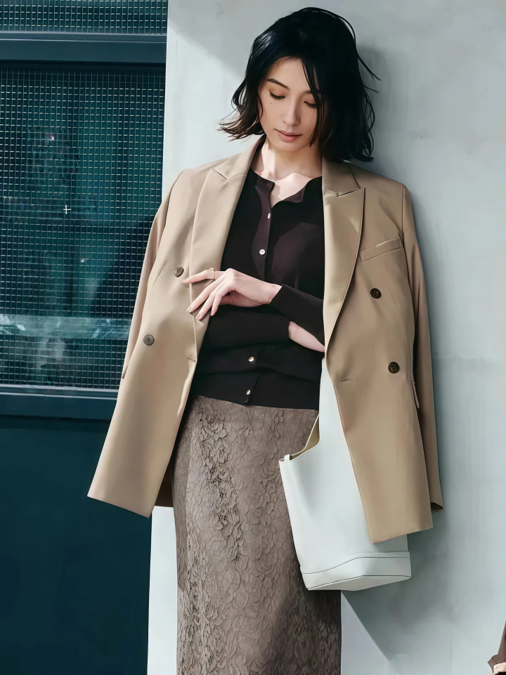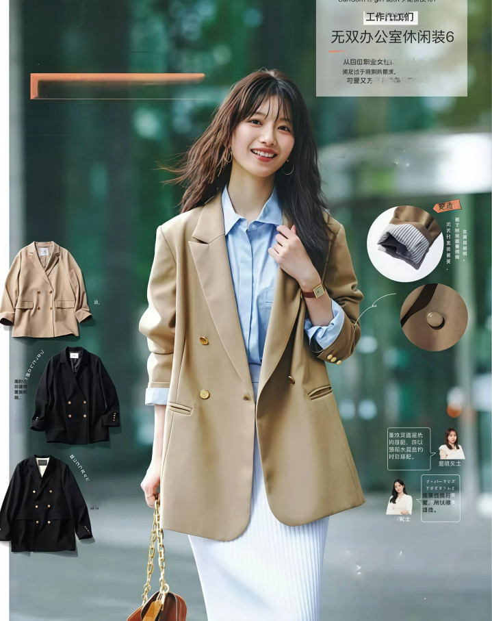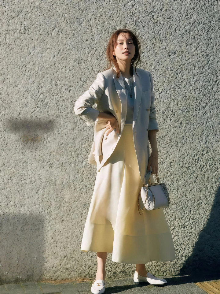 换成坚持米色、咖色粗略驼色系的西装试试,这些心境和春天的暖色调色泽完全吻合,穿起来明显衬肤色、提气色,而况这几种心境对上了年龄的女脾气外友好,能中庸面部发黄和暗千里的景况。