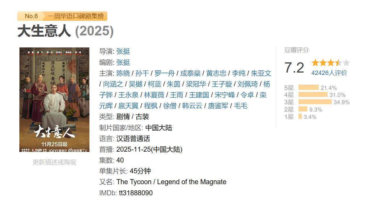况且《大生意东说念主》雷同亦然晚清生意大剧,不雅众的期待值一下拉满。