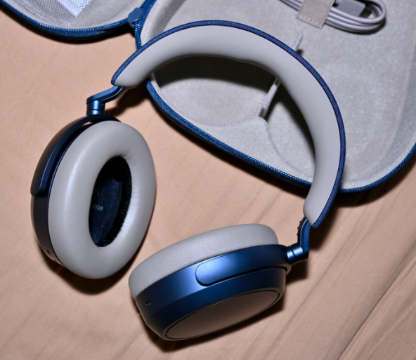 佩戴舒罢休:整机293g,采选虚耗皮质头梁 + 加厚挂牵棉耳罩,耳罩柔嫩结实,包裹性强,质感顶级,但分量偏重,久戴坠耳感、压头感极强。