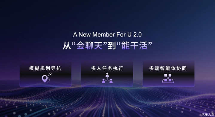 本次车展亮相的 New Member 2.0,已矣了从“会聊天”到“颖异活”的中枢逾越。它可支抓朦拢意图导航,伙同用户记挂与场景信息筹谋个性化行程;能同步识别、处理多东说念主指示并一键实施任务,突破传统语音交互的局限;更能买通东说念主、车、家、办公场景的范围,已矣多端智能体的无缝协同,为用户打造全场景连贯的智能体验。